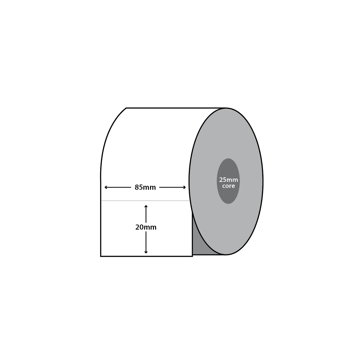 80mm wide x 25mm high Matt Synthetic with Permanent Adhesive. 1 across. Prod 1″ cores; 2000 labels per roll. Tinted Lilac.